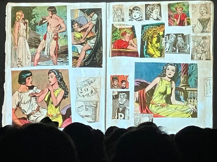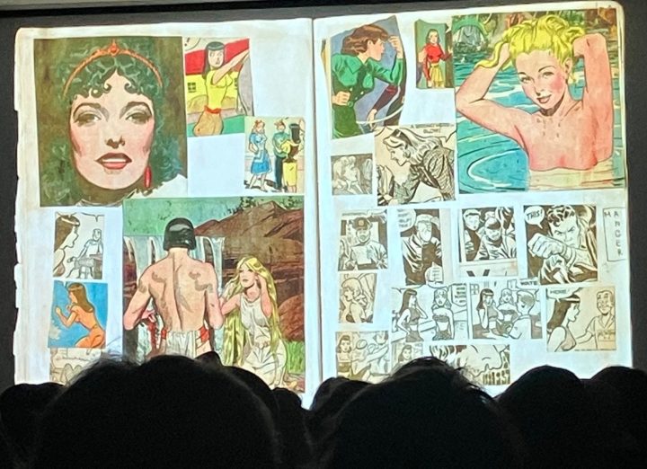Burns showed his dad’s scrap books. They were full of clippings from newspaper comics. Mostly pretty ladies with some monsters and heroes. I think he said his dad was an engineer who really liked all the tools and techniques of drawing and art but didn’t care much for the creativity part. He did own a lot of cool pens and tools though. Burns’ dad was also a model train enthusiast; had a whole set up in the basement. Someone asked if he got to do fun model train stuff with his dad. Burns chuckled and said, “Oh no, that was a solitary thing for him, it was kinda, he’s happy down there, let him be.”