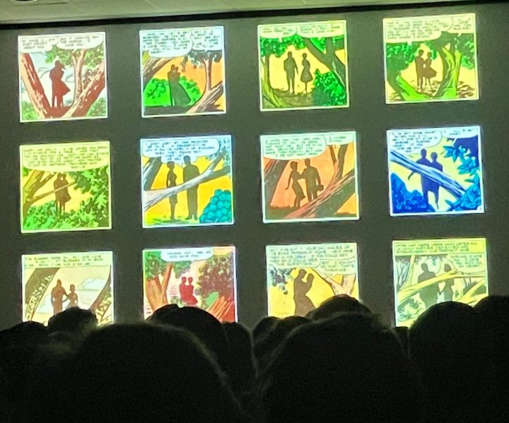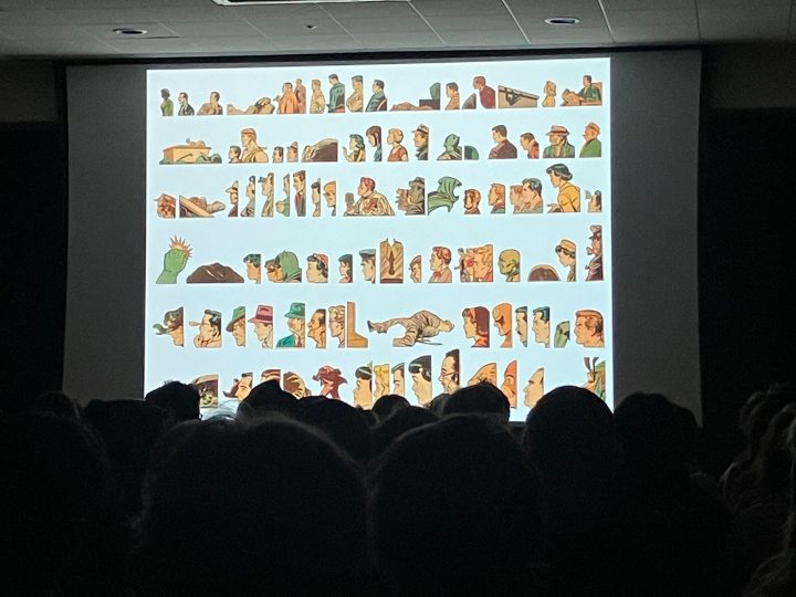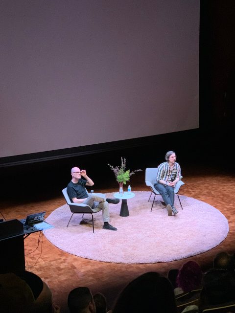 Coming back from lunch, I was about 10 minutes late to Thomas Campbell’s interview with Kevin Huizenga. Huizenga is a generous pontificate on creativity and process and he often talks with his eyes closed which gives him a fun mystique. He was talking about studying the postures of baseball players in order to draw them though he doesn’t like baseball, and admittedly doesn’t like sports at all. I heard him talk at Partners and Son about drawing golfers despite hating golf. Artists who don’t like sports, as common an archetype as they are, are rare where I come from. I taught at an art school during Super Bowl LII; my students were all climbing poles.