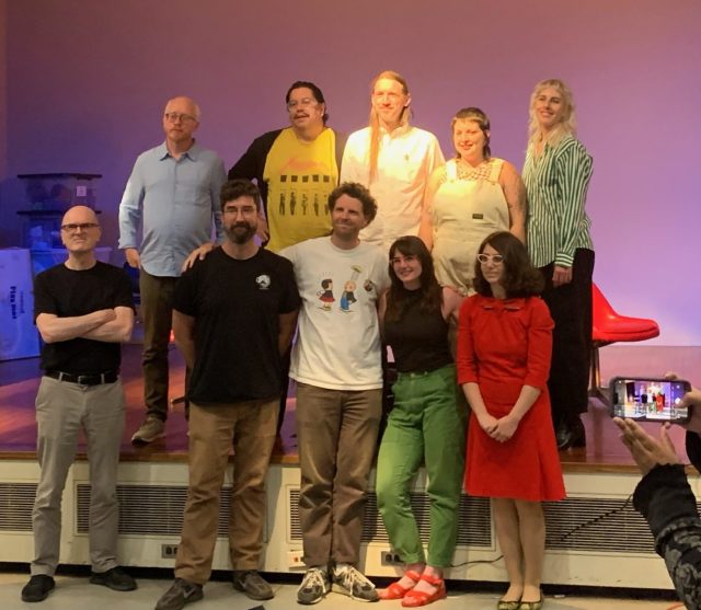 Saturday evening, the Richmond ICA screened two mail order 8mm horror films from Burns’ private collection. There was popcorn in tiny paper bags. Burns reminded us that they’re meant to be viewed in a living room or a backyard probably projected onto a bed sheet but this is an art festival so we had a theater and a Q&A with Dash Shaw. We watched I was a Teenage Werewolf and I was a Teenage Frankenstein. We were warned that the stories would be redundant. Teenage boy is betrayed by mentor and is turned/reanimated into a monster, teenage boy monster kills first teenage girl he finds, teenage boy monster seeks revenge on mentor, is or isn’t successful, is slain by mentor or sheriffs posse. I was surprised to be very frightened by the turn that I was a Teenage Frankenstein took in the end. I don’t care if this spoils it for you, you’ve had something like 50 years to watch this film. At the end of I was a Teenage Frankenstein, when the teenage boy Frankenstein Monster goes to kill his Dr Frankenstein creator for what he’s made him do, his move is instead to destroy himself as revenge. He throws himself against the electrical machinery or whatever sciency looking crap you use to reanimate teenage body parts, and electrocutes himself into un-animation. But then wouldn’t you know, the Dr Frankenstein creator just reanimates him again! Immortality as punishment! Like Cain or Melmoth. I didn’t think I’d be scared, but hey- I was scared. Finally, a near voiceless Brian Baynes thanked everyone and everyone thanked the near voiceless Brian Baynes and that was the end of Bubbles Con 2025. If Brian hasn’t yet learned the true cost of his own generosity and work ethic then there will probably be more Bubbles Cons in the future. I highly recommend you attend. Also Richmond VA has free buses. Like actually.