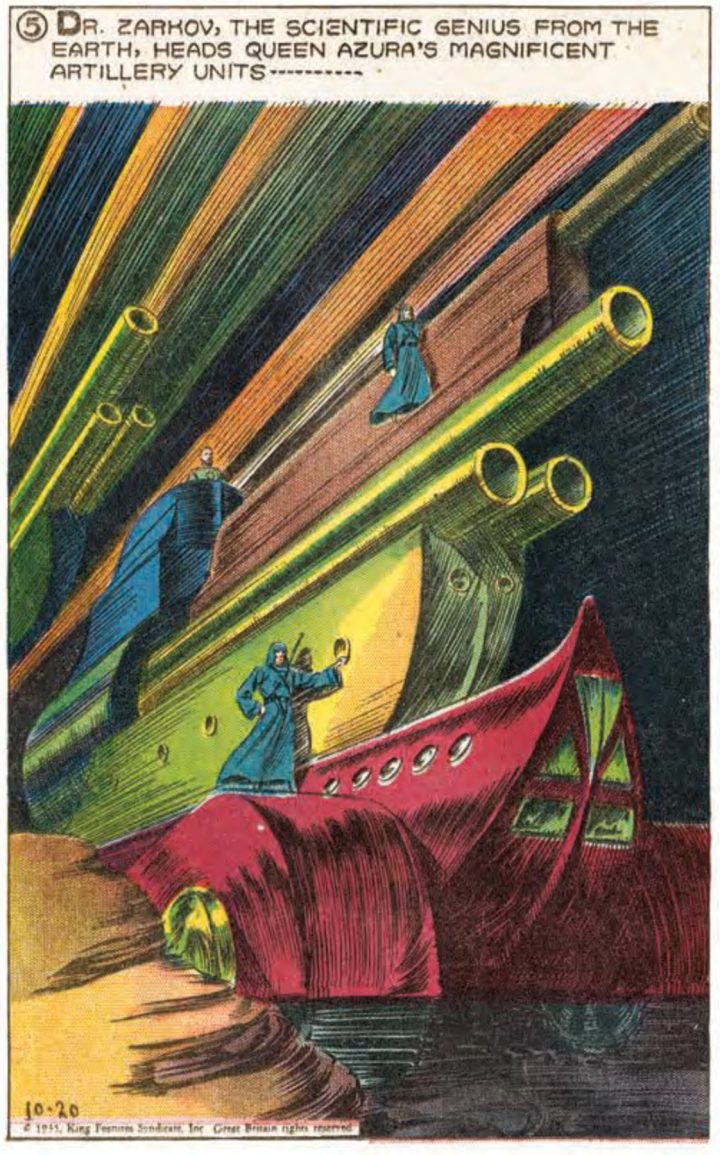 The setting in Flash Gordon is very functional that way- it's not supposed to be coherent so much as it's supposed to be colorful and intense. This is a comic where Flash and Dale often appear with little in the way of clothing, not for the sake of titillation, but to emphasize that they're in a very dangerous situation which could easily kill them, even if it never actually does. The king of the impossible indeed.