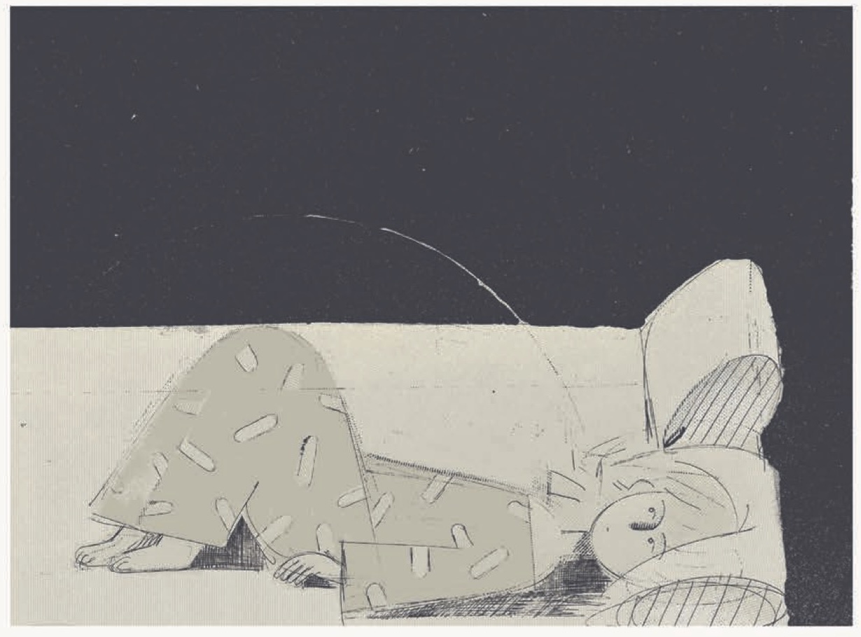 Of course, this is a book by Roman Muradov, so as strong and subtle as the story is, it would not be as great a success without his amazing visual sensibilities. The layout is perfectly executed, drawing the eye exactly where it needs to be while leaving plenty of richness on the margins. The art takes a lot of risks, blending thin meandering linework and the overall look of a delicate cut-out animation with a deft blend of finesse and broadness. It deploys precision where it is needed and brings in abstraction when abstraction is more effective, while being careful with well-executed details that matter. The use of color here (and, when necessary, the absence of color) is absolutely perfect, perhaps the best in his storied career. When the story gets too heavy, it is the art that draws you in and prevents you from looking away.