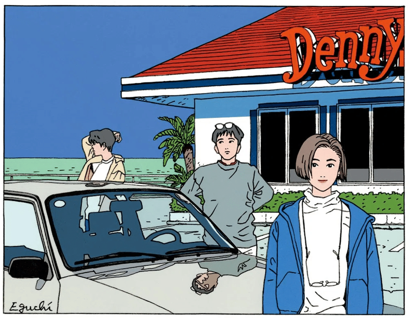 Not everything he drew began with a photograph. For Eguchi, tracing functioned more as a form of study — a way to internalize proportion and gesture. His diligence was well known. Of American cartoonist Adrian Tomine, he once remarked, “His line isn’t particularly refined, but his color sense is excellent.” That kind of comment reveals Eguchi’s precision: an artist always dissecting what makes a line come alive.
