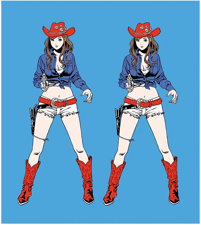 Several overlapping ideas supported this transition: the claim that manga descends from Hokusai’s woodblock lineage; that it inherits the tradition of bijinga (pictures of beautiful women); and that Eguchi could therefore be seen as a Japanese counterpart to Roy Lichtenstein. Those narratives kept his work safely outside the old hierarchies — and gave him freedom, but also isolation.